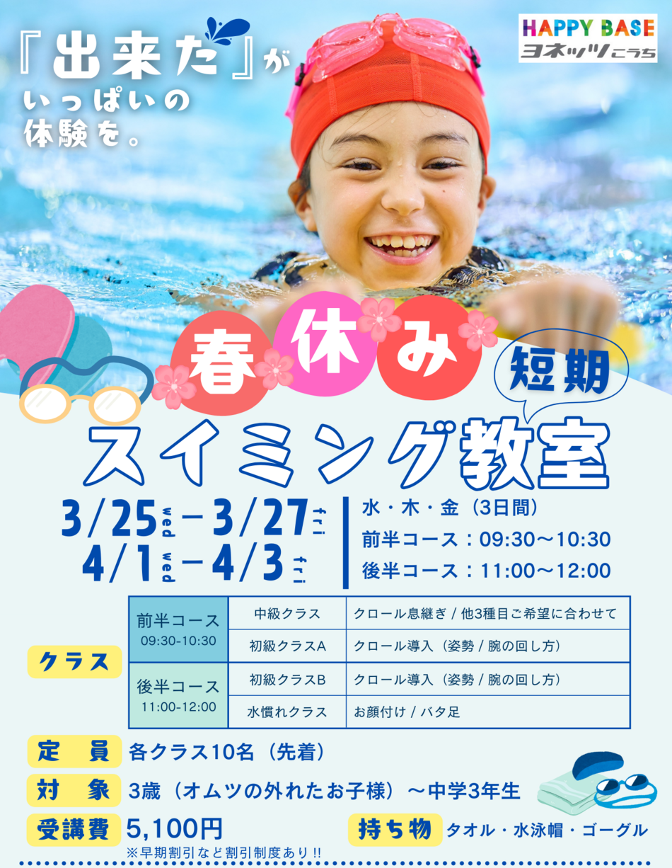 - 2026年2月18日 春の短期水泳教室開催‼